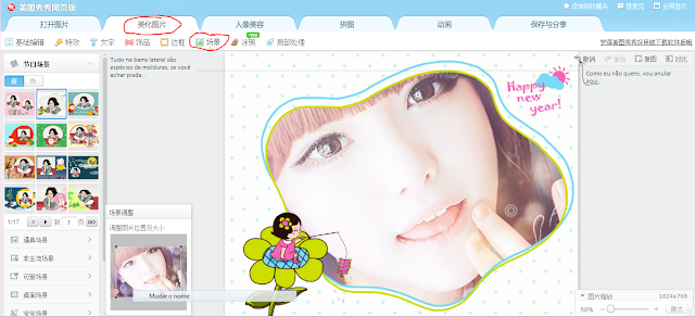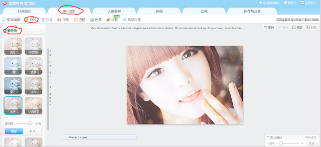 Hoje estou muito bem disposta porque embora tenha perdido o meu tempo, descobri um editor de fotos muito melhor que o Photoshop, usando pelas coreanas lindas que povoam as ilustrações de postagem de imensos blogs. Sabem, elas já usam montes de cirurgias, maquilhagem e photoshop (mais aqui), mas com este editor, ficam ainda mais fictícias